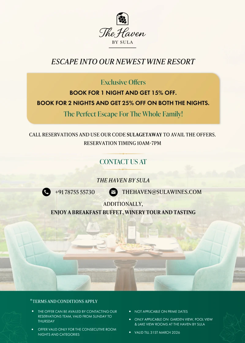 Immerse yourself in our beautiful vineyards, witness the wonders of winemaking process, and experience the joy of wine tasting through stunning visuals. From the serene rolling hills of Nashik to the artful craftsmanship behind our award-winning wines, let us transport you to the heart of Sula Vineyards. Cheers to a visual exploration of our vineyards, wines, and the Sula story!